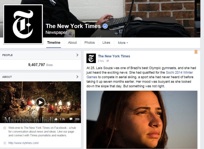 | Trang Facebook củaNew York Times. Ảnh: Chụp màn hình ngày 13-5. |