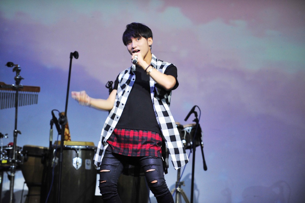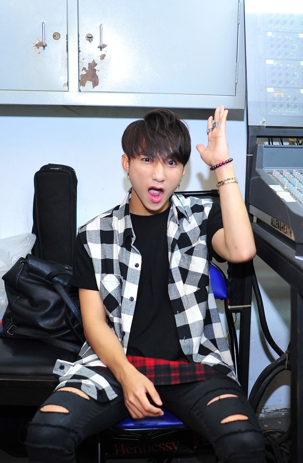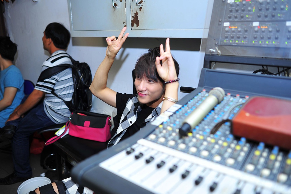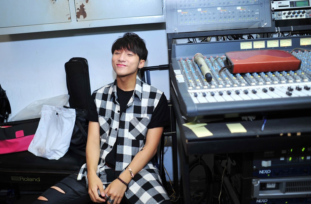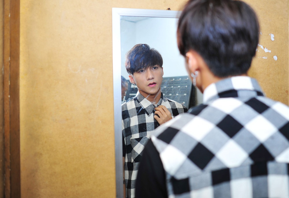 | Đây là mini show đầu tiên nên Sơn Tùng đã đến rất sớm để chuẩn bị. Trước khi ra sân khấu, anh có những bức hình nhí nhảnh, trẻ trung sau cánh gà. |