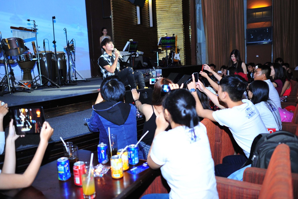 | Trong mini show, Sơn Tùng đã hát những bản hit của mình như Em của ngày hôm qua, Nắng âm xa dần, Em đừng đi… với bản phối hoàn toàn mới, gây được hiệu ứng mạnh với khán giả. |