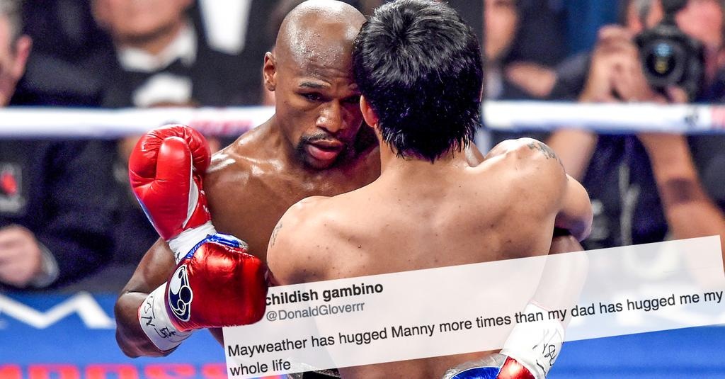 | Trên trang cá nhân, một người hâm mộ đưa ra bình luận khá hài hước về việc Floyd Mayweather thường xuyên ôm Manny trong trận đấu, nhiều hơn số lần CĐV này được bố ôm suốt cuộc đời. Đây là cách võ sĩ người Mỹ sử dụng để tránh những pha tấn công của PacMan. |