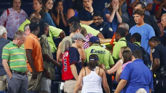 Cảnh sát Atlanta xác nhận, cổ động viên này không thể qua khỏi trong bệnh viện Grady Memorial do chấn thương quá nặng sau khi ngã ở khán đài sân Turner Field. Trong trận bóng chày giữa New York Yankees và Atlanta Braves diễn ra hôm qua (29/8), một người đàn ông (khoảng 60 tuổi) rơi từ tầng trên xuống khu vực khán đài dành cho gia đình cầu thủ.