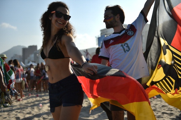 | Mộ nữ CĐV Đức xinh đẹp ăn mừng chiến thắng "4 sao" của thầy trò Joachim Loew. |
