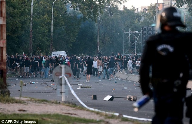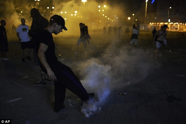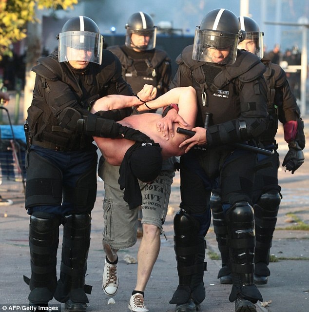 | Những kẻ quá khích thậm chí thách thức cả cảnh sát chống bạo động. Họ ném chai, lọ và pháo sáng về các nhân viên an ninh. |