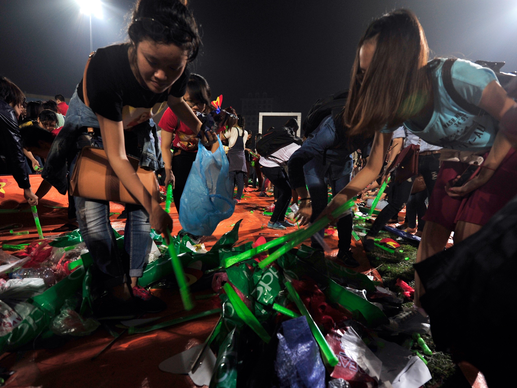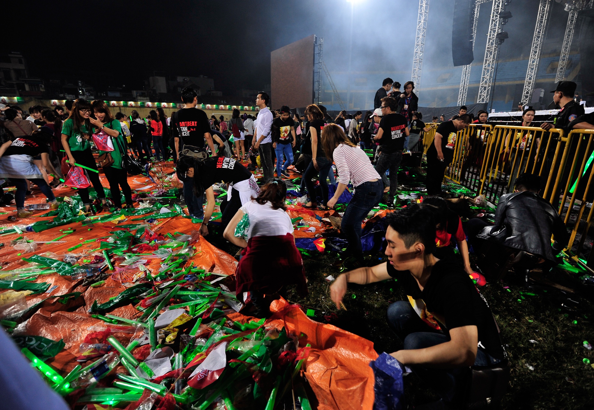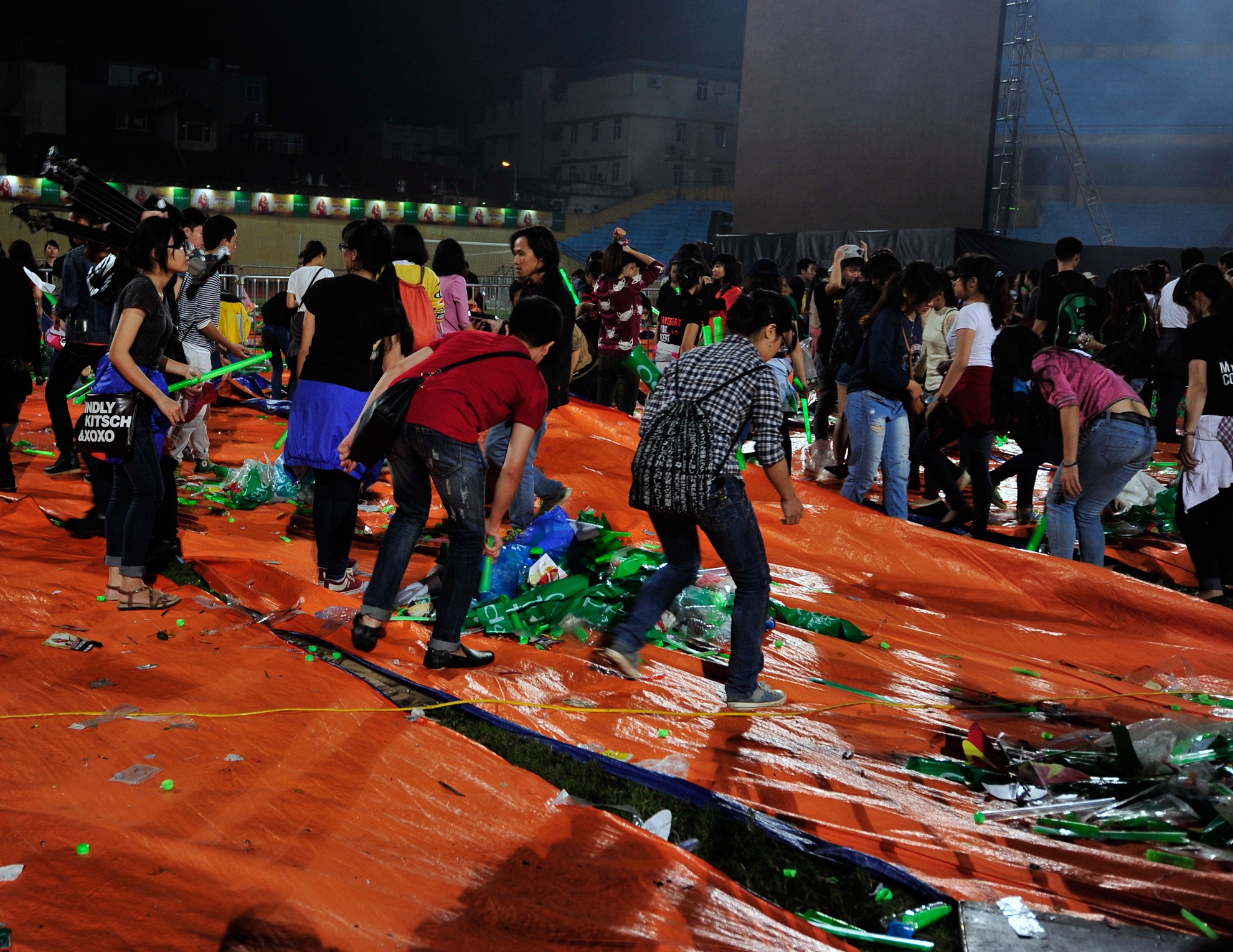 | Sau đêm nhạc, nhiều khán giả đã cùng nhau ở lại để dọn rác dù trời đã về khuya. |