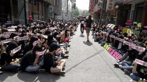 | Các nữ sinh nằm ra đường vì Sechs Kies tan rã. |