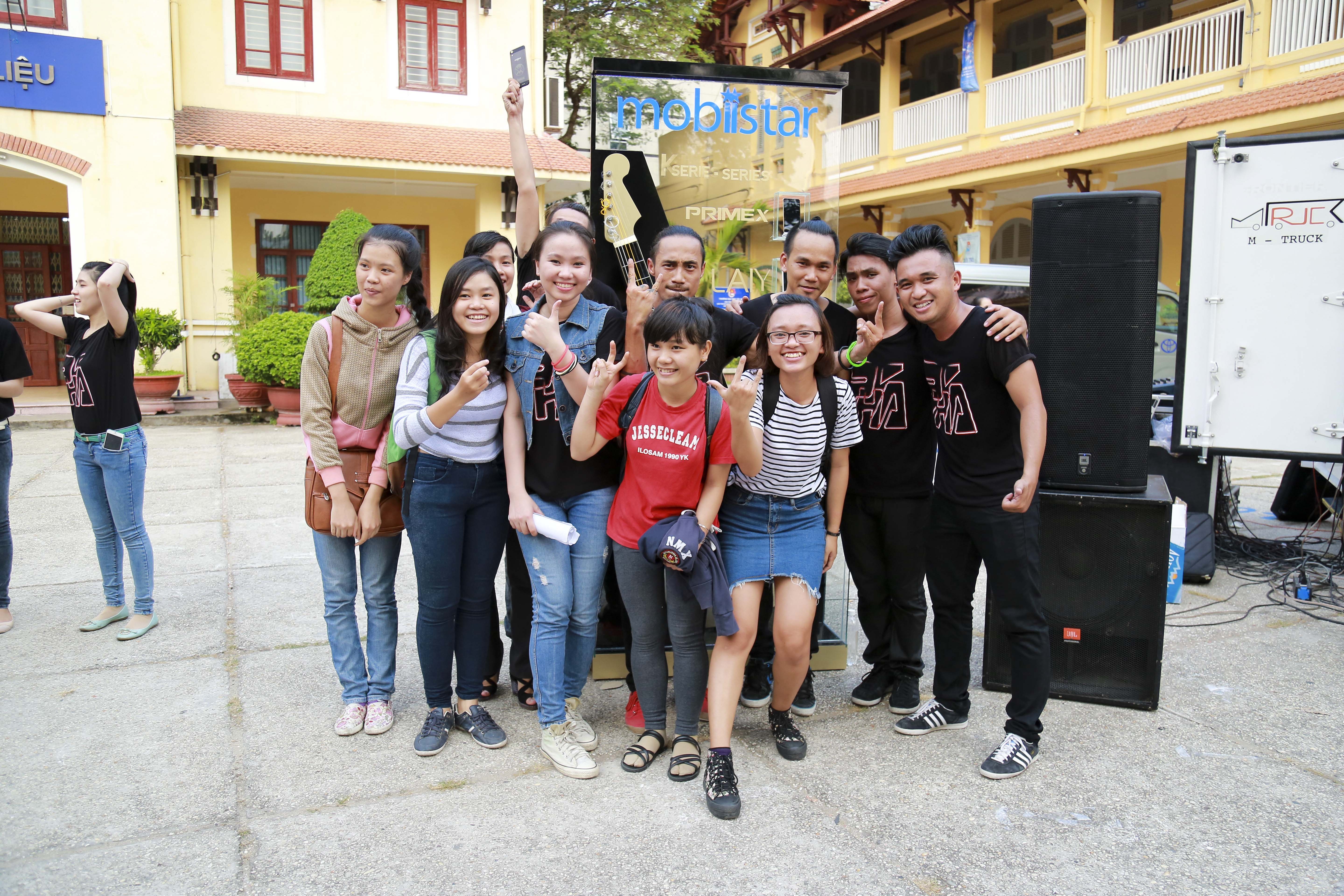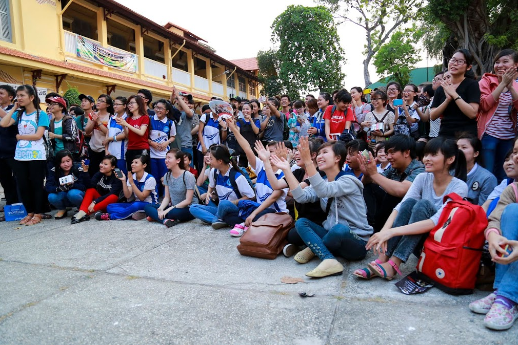 | Rất nhiều fan Mr.PAK đã xuất hiện trong tour âm nhạc lần này. Tại Đại học Sài Gòn, bạn Lê Ánh Khoa (Khoa Sư phạm Lịch sử) không ngần ngại lên sân khấu xe tải để rock cùng Phạm Anh Khoa. |