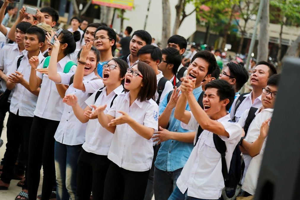 | Trong khi đó, tại Đại học Giao thông vận tải, bạn Dương Tất Thành (Ninh Bình) đã đáp chuyến bay từ Hà Nội vào TP HCM để tham gia hát hết mình cùng PAK Band. Dương Tất Thành cũng chính là người xuất sắc đoạt giải cuộc thi cover Hát cùng Mr.PAK trên Fanpage của Phạm Anh Khoa. |