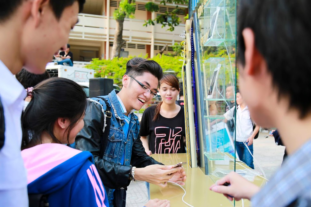 | Đặc biệt, trước khi những màn trình diễn của PAK Band bắt đầu, hàng loạt sinh viên của các trường đại học đã có cơ hội chạm tay và trải nghiệm chiếc smartphone mạ vàng đẹp mắt. Không ít bạn muốn tìm hiểu thông tin về chiếc smartphone này. |
