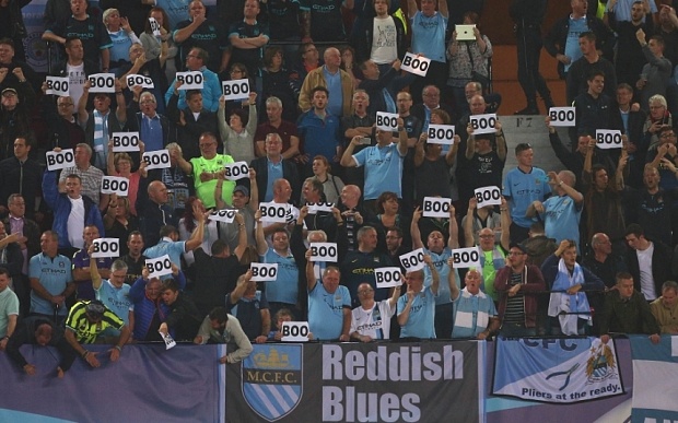 CĐV Man City vốn nổi tiếng là những người không ưa gì UEFA, bởi tổ chức này nhiều lần ngăn cản Man City trên con đường chinh phục châu Âu. Cụ thể, UEFA từng đưa ra án phạt 49 triệu bảng cho Man City vì lách luật Công bằng tài chính, đồng thời BTC Champions League còn ép Man City phải giảm số lượng đăng ký từ 25 xuống còn 21 cầu thủ.