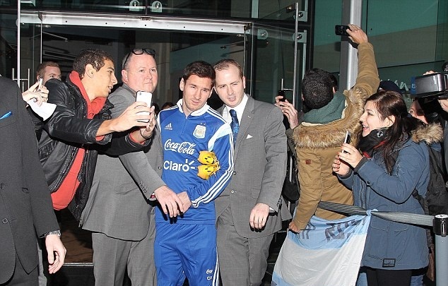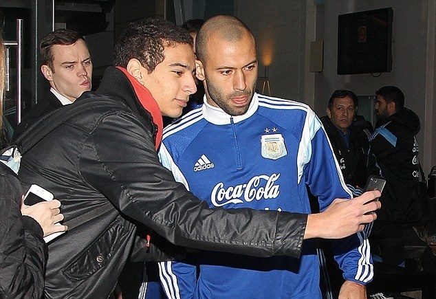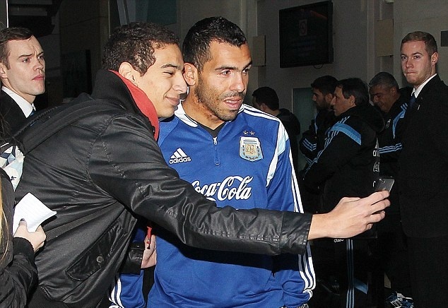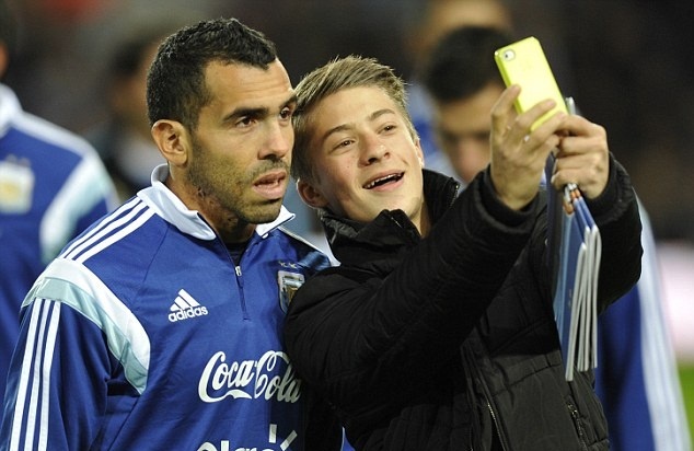 | Một CĐV may mắn khi được phép chụp ảnh selfie với những ngôi sao hàng đầu thế giới như Messi, Tevez hay Mascherano. |