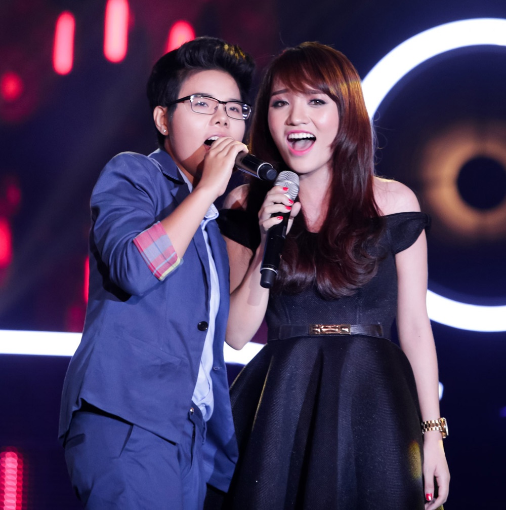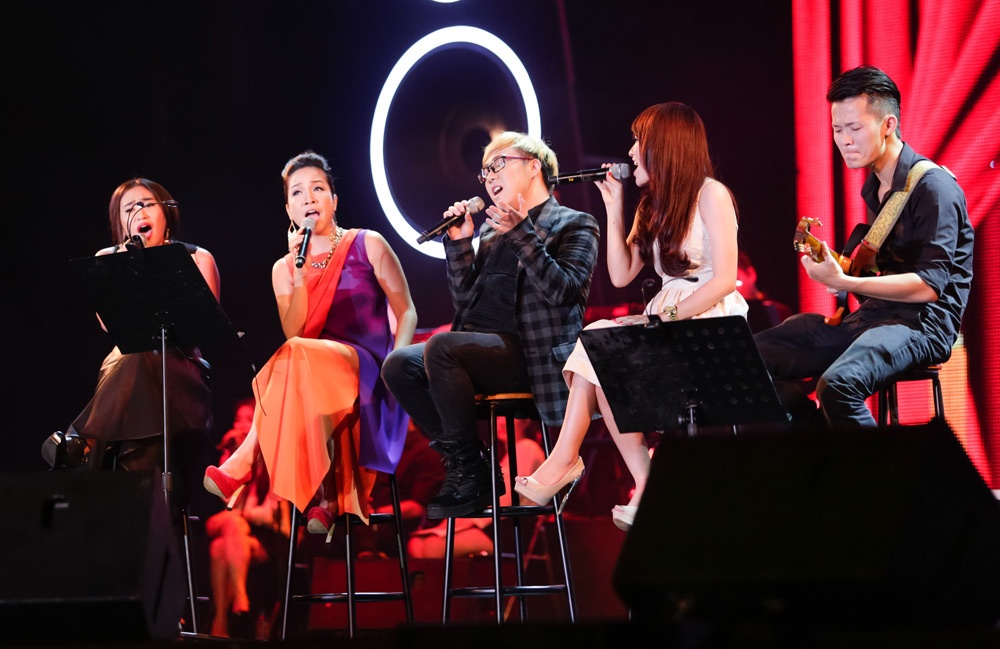 | Màn song ca của Uyên Linh và Văn Mai Hương với ca khúc Anh mãi là cũng khiến khán giả thích thú. Đây là lần song ca hiếm hoi của hai nữ ca sĩ từ sau cuộc thi Vietnam Idol xóa tan nghi vấn hiềm khích giữa hai người. |
