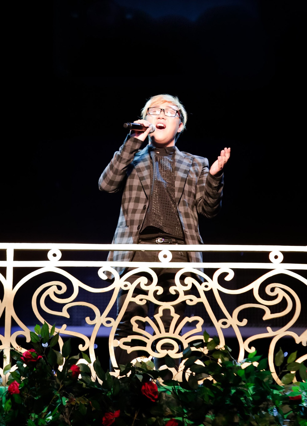 | Hoàng Tôn và Vũ Hạnh Nguyên lần đầu song ca trên sân khấu. Cả hai thể hiện ca khúc Ôm chặt lấy em. |