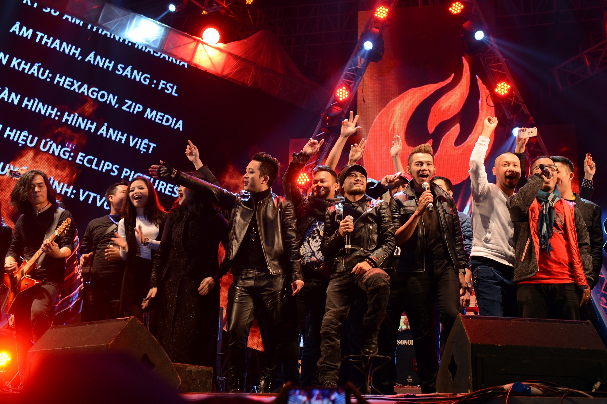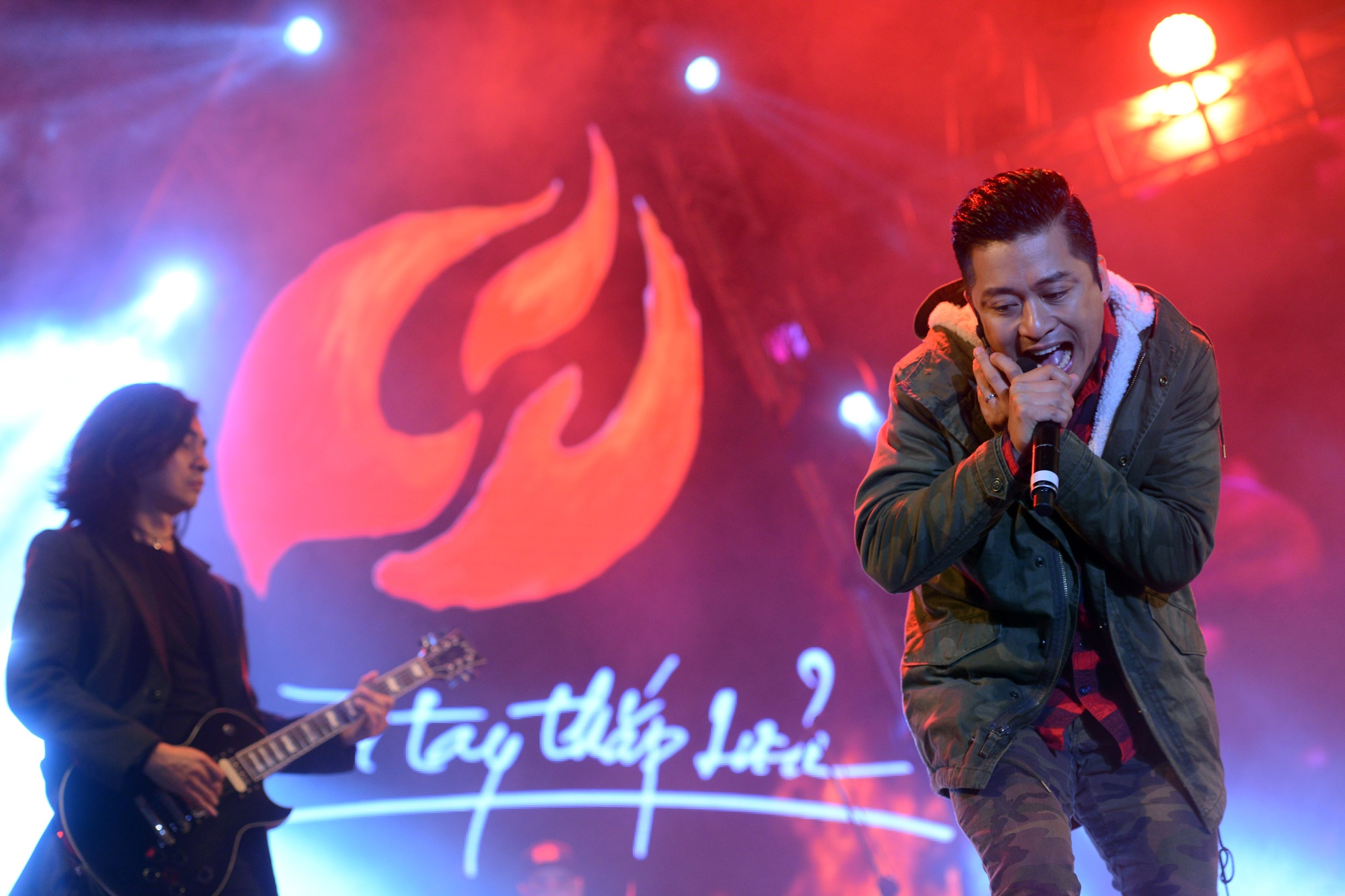 | Đêm nhạc Đôi bàn tay thắp lửa có sự góp mặt của những đồng nghiệp, bạn bè thân thiết với Bức Tường và Trần Lập như rock-band Microwave, SmallFire, Hạc San... cùng Thanh Lam, Hồng Nhung, Tùng Dương... Mỗi nhóm nhạc đều thể hiện xen lẫn hit riêng và một ca khúc gắn liền với tên tuổi của Bức Tường. |