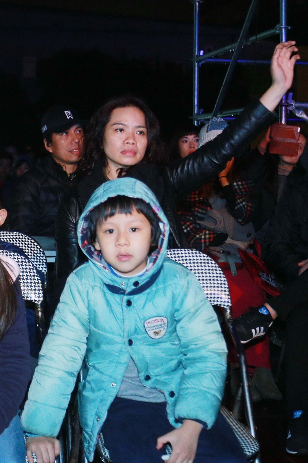 | Bà xã và hai con của Trần Lập cũng có mặt trong đêm nhạc Đôi bàn tay thắp lửa. Chị chăm chú theo dõi chồng biểu diễn và đâu đó sâu trong đáy mắt là giọt nước mắt của nữ chiến binh đã mạnh mẽ đồng hành cùng Trần Lập vượt qua nhiều thăng trầm của cuộc sống. |