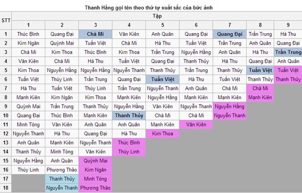 | Danh sách thí sinh bị loại được cập nhật từ tập 1 đến tập 9. |