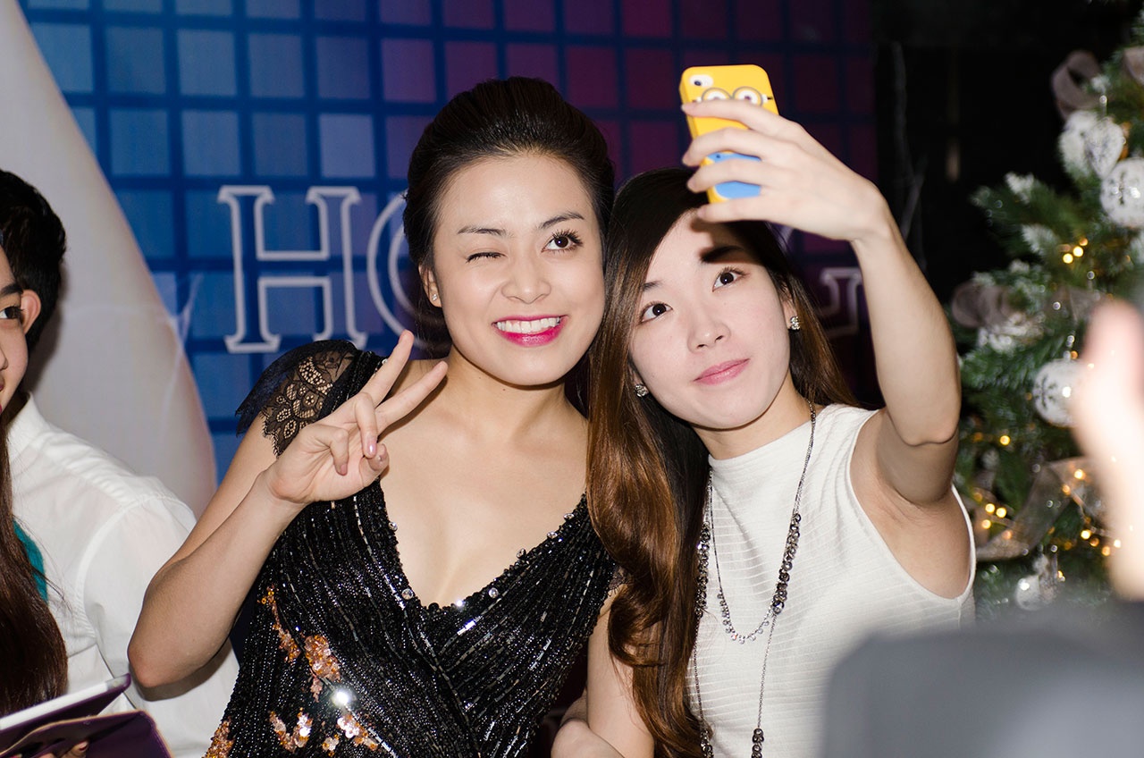 Thỉnh thoảng, cô nàng lại ghé chỗ các fan tập trung để chụp hình "tự sướng" cùng họ.