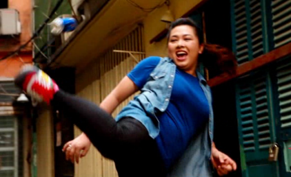 | Đông Nhi tập luyện để đáp trả lời thách đấu từ danh thủ Lionel Messi. |