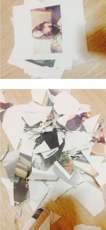 | Người này còn dùng dao kéo rạch, cắt nát ảnh của Sulli. Ảnh: instiz |