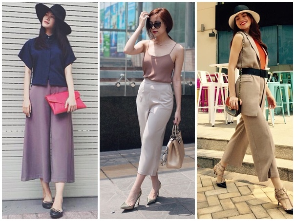 Quần culottes: Mốt quần lửng, suông rộng là kiểu dáng được lòng sao Việt từ đầu mùa xuân 2015. Xu hướng quần cổ điển của thập niên trước được làm mới với cách mix hiện đại. Nhiều tín đồ thời trang hòa trộn cùng áo sơ-mi, hai dây gợi cảm, áo crop-top thanh lịch hoặc áo thun năng động. Nhờ những biến tấu mới mẻ, quần culottes trở thành item thời trang được giới công sở và tín đồ đường phố yêu thích.