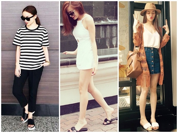 Quần culottes, túi philosophy, chân váy xếp ly, dép lê... là item thời trang nhận được sự quan tâm từ các icon sành mốt như Hồ Ngọc Hà, Yến Trang, Yến Nhi...