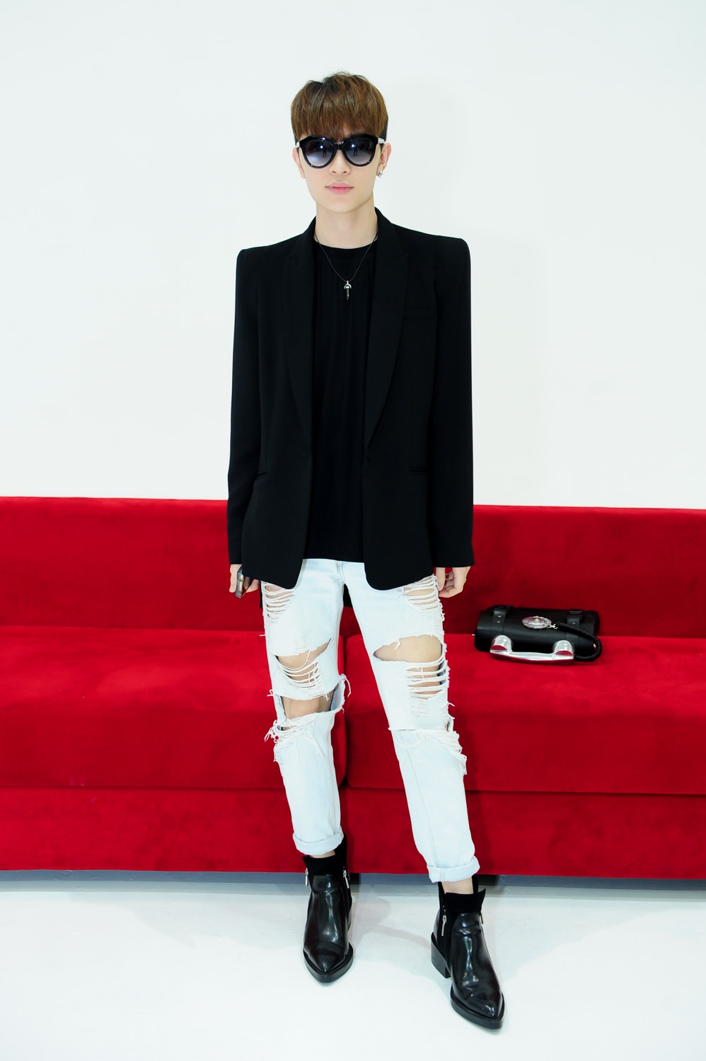 | Stylist Kelbin Lei ăn vận sành điệu khi xuất hiện trong buổi giao lưu với các thí sinh Fashionista Vietnam. |