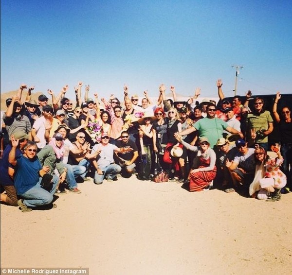 Bên cạnh đó là bức ảnh ăn mừng của toàn bộ dàn diễn viên và đoàn làm phim của Fast & Furious 7, cùng lời chia sẻ chân thành: "Ngày cuối cùng trên phim trường Fast & Furious 7, một cảnh quay cảm xúc. Chúng tôi đã đóng máy bằng một bức ảnh tràn ngập tình yêu với tất cả những người tham gia vào nó bằng tất cả sự tôn trọng".