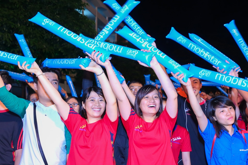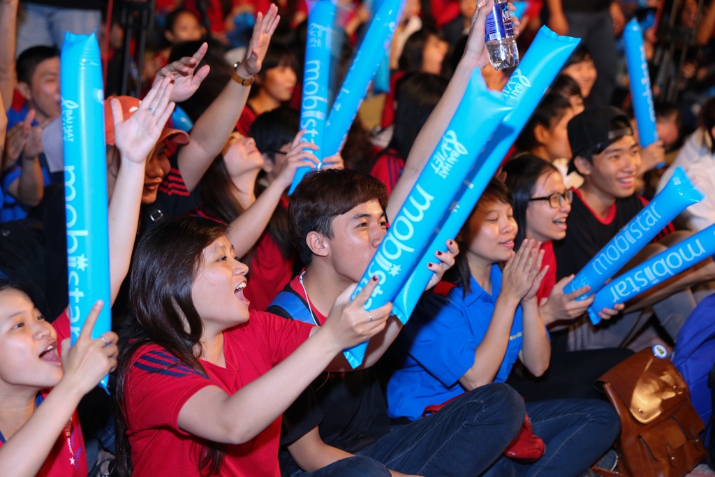 | Các bạn sinh viên cỗ vũ nhiệt tình cho các tiết mục đêm với đêm gala sinh viên Bài hát Việt. |
