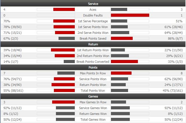 7-6: Loạt tie-break diễn ra rất căng thẳng khi mỗi tay vợt đều có cơ hội giành set-point. Tuy nhiên, Federer đã chứng tỏ bản lĩnh đúng lúc để giành chiến thắng với một cú trái dọc dây chuẩn xác.