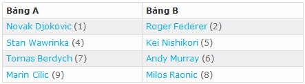 *Kết quả bốc thăm vòng bảng ATP World Tour Finals