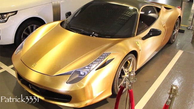 Khi đến thăm thành phố giàu có của Trung Đông, thành viên YouTube có tên Patrick3331 đã có cơ hội chiêm ngưỡng chiếc Ferrari 458 Italia mạ vàng đặc biệt trong một khu vực đỗ xe. Thông thường, những "bộ cánh" mạ crôm vàng thường tạo cảm giác rẻ tiền hơn cho siêu xe. Thế nhưng, lớp áo mới bên ngoài chiếc Ferrari 458 Italia lại thực sự đẹp mắt. Có vẻ như chiếc siêu xe Ý đã được độ lại dưới bàn tay của dân chuyên nghiệp.