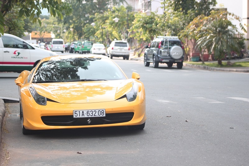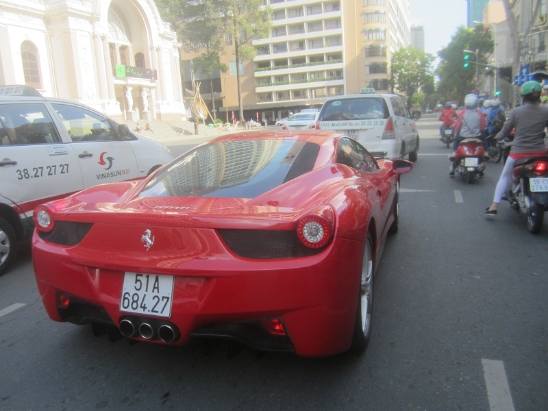 | Chiếc Ferrari 458 Italia xuất hiện chiều hôm qua (24/11) trước Nhà hát thành phố. |