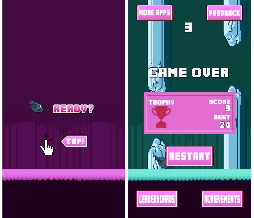 Game này vẫn giữ nguyên đồ họa 8-bit từ Flappy Bird, nhưng sinh vật bay của nó có chút gì đó giống với của game Tiny Wings.