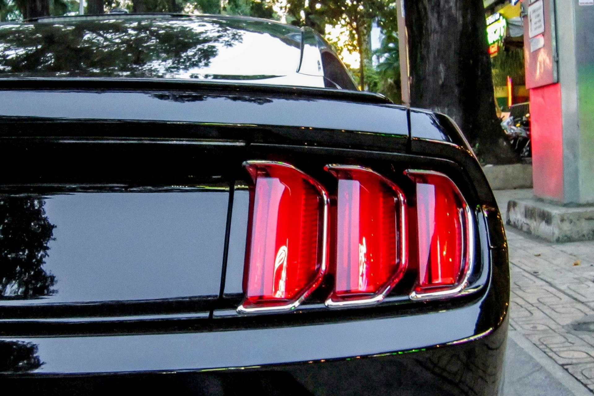 | Cụm đèn hậu được bao quanh bởi các viền mạ chrome sáng bóng. Trên phiên bản giới hạn còn có thêm bộ vành xe 19 inch đi kèm lốp Pirelli P Zero kẹp phanh Brembo 6 piston phía trước. Tuy nhiên, những phụ kiện này không có trên Mustang Ecoboost. |