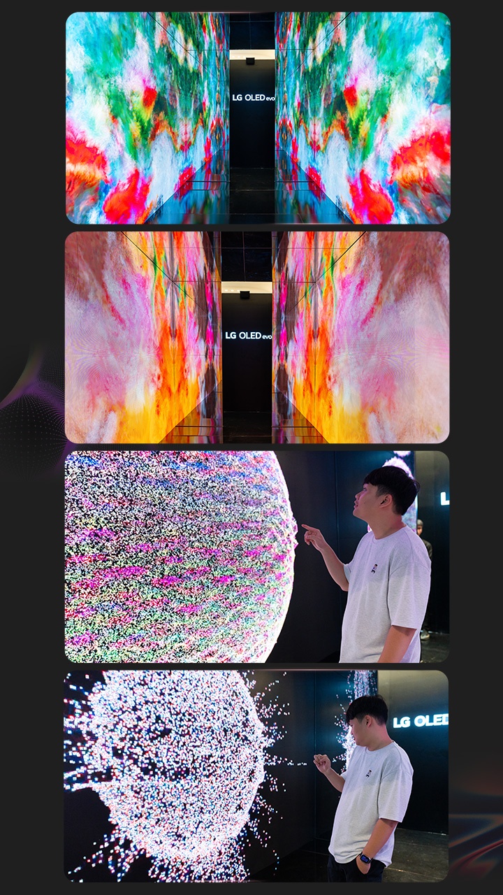 Bên cạnh đó, các tác phẩm được trình chiếu trên một khung tranh khổng lồ được ghép nối từ 6 TV OLED mới nhất từ LG. Người dùng có thể tương tác tay để tạo nên những chuyển động, tạo nên vẻ đẹp mới mẻ cho các tác phẩm. Được biết, những tác phẩm này được lấy cảm hứng từ công nghệ Zero Connect trên siêu phẩm LG OLED evo M4.