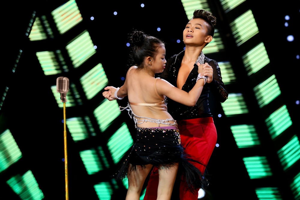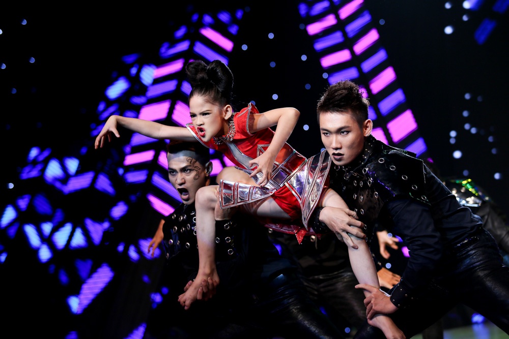 Thí sinh nhí Trần Bảo Ngọc trình diễn nhảy dancesport kết hợp nhảy hiện đại trên nền nhạc Poker face – Bad romance. Trái ngược hoàn toàn với hình ảnh cô bé dân tộc vùng cao hiền lành tuần trước, Bảo Ngọc vô cùng nhập vai khi hoá thành Lady Gaga trên sân khấu. |