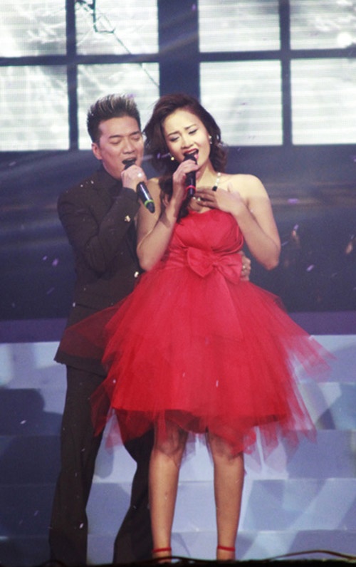 | Hà Thúy Anh và giảng viên thanh nhạc Hoài Nam. |