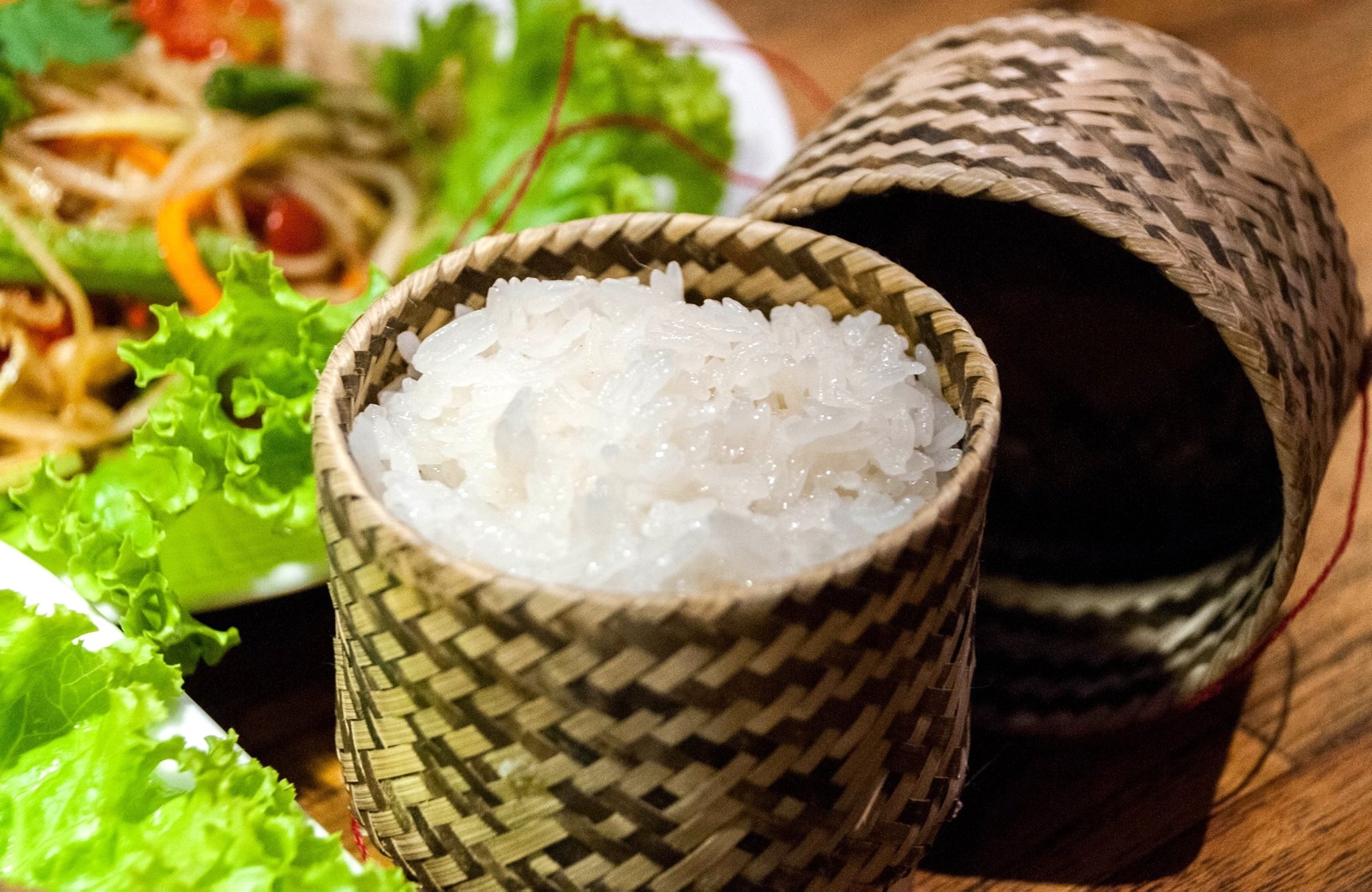 | Trong các bữa tiệc, cơm gia đình, người Lào thường ăn xôi. Đây cũng là món truyền thống của đất nước triệu voi mà bạn có thể trải nghiệm tại TP.HCM. Xôi Lào làm từ loại nếp dẻo thơm, màu trắng ngà đẹp mắt và thường được đựng trong giỏ đan bằng tre. Ảnh: KhaoLao.VN. |