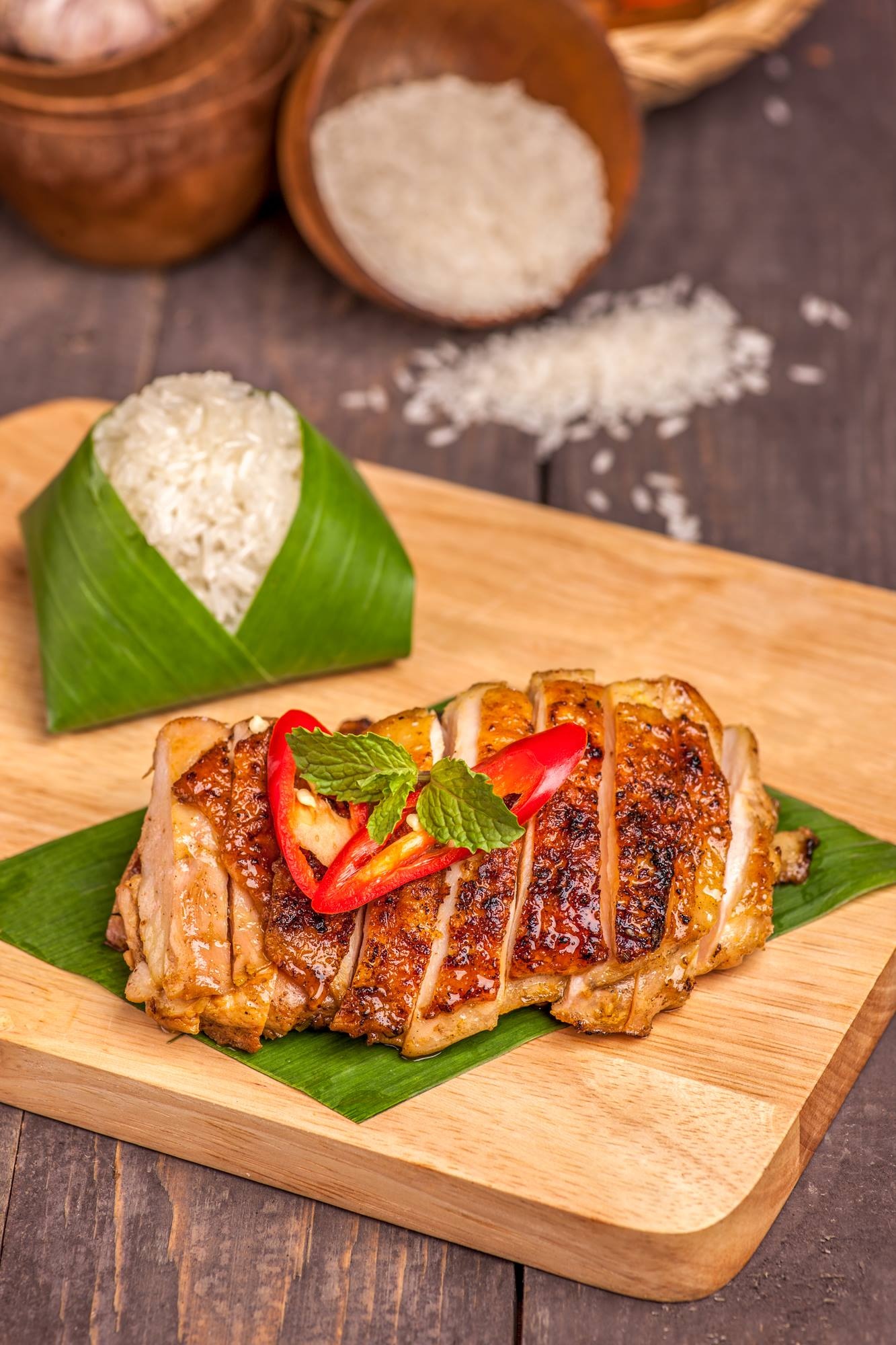 | Thực khách đừng quên ăn xôi với Ping Kai (gà nướng) để cảm nhận trọn vẹn vị ngon dân dã. Thịt gà được ướp tiêu đen, tỏi, rễ rau mùi... rồi đem nướng chín trên than hoa tỏa hương thơm lừng. Ngoài ra, cá sốt cay Viêng Chăn cũng hút giới sành ăn không kém. Điểm nhấn là phần nước sốt cay quyện vị chua ngọt mang đặc trưng của ẩm thực Lào. Ảnh: KhaoLao.VN. |