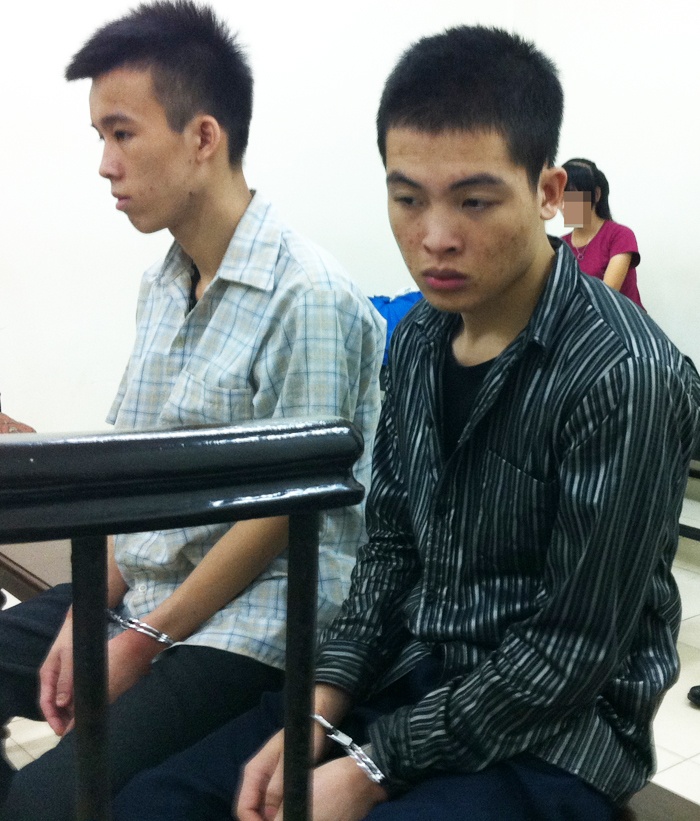 Hầu tòa sáng 4/9, Nguyễn Doãn Sơn (20 tuổi, ở huyện Đông Anh, Hà Nội) luôn cúi gằm mặt, cạnh đó là bị cáo Nguyễn Đăng Toán (19 tuổi) hai tay cũng vặn vẹo trong chiếc còng số 8 khóa chặt.