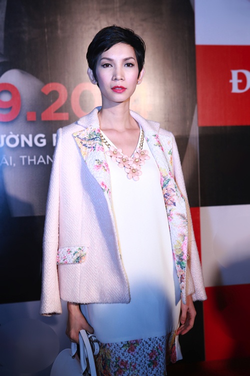 | Cựu người mẫu Xuân Lan ghi điểm phong cách nhờ bộ cánh gam màu trắng kết hợp áo vest tông hồng phấn rất nhã nhặn. Hơn nữa, bộ cánh còn được mix họa tiết hoa hợp tông trên cổ áo và chân váy tạo sự đồng nhất cho tổng thể. Trang phục tinh tế, hợp xu hướng đưa nữ giám khảo Vietnam's Next Top Model và danh sách mỹ nhân của tuần qua. |