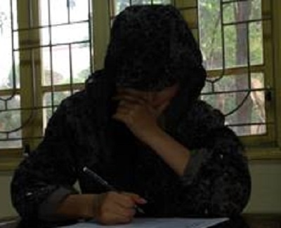 | Nữ nhân viên massage bị tạm giữ để điều tra. |