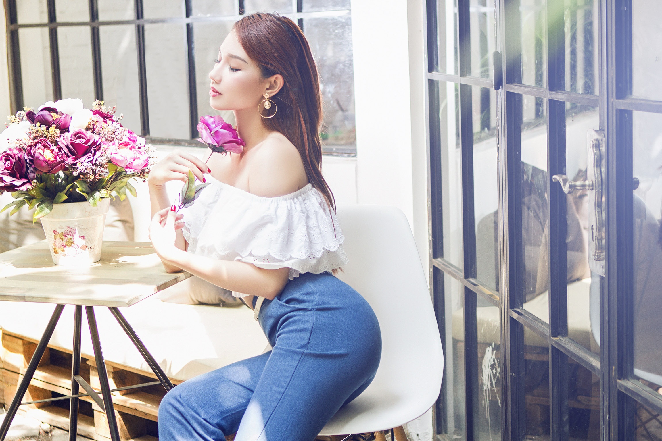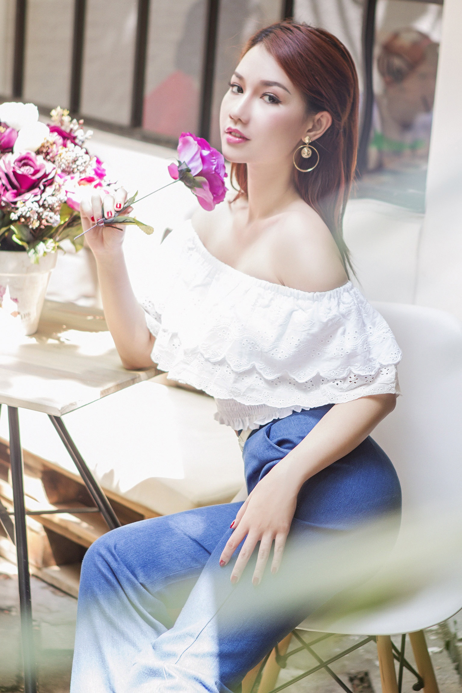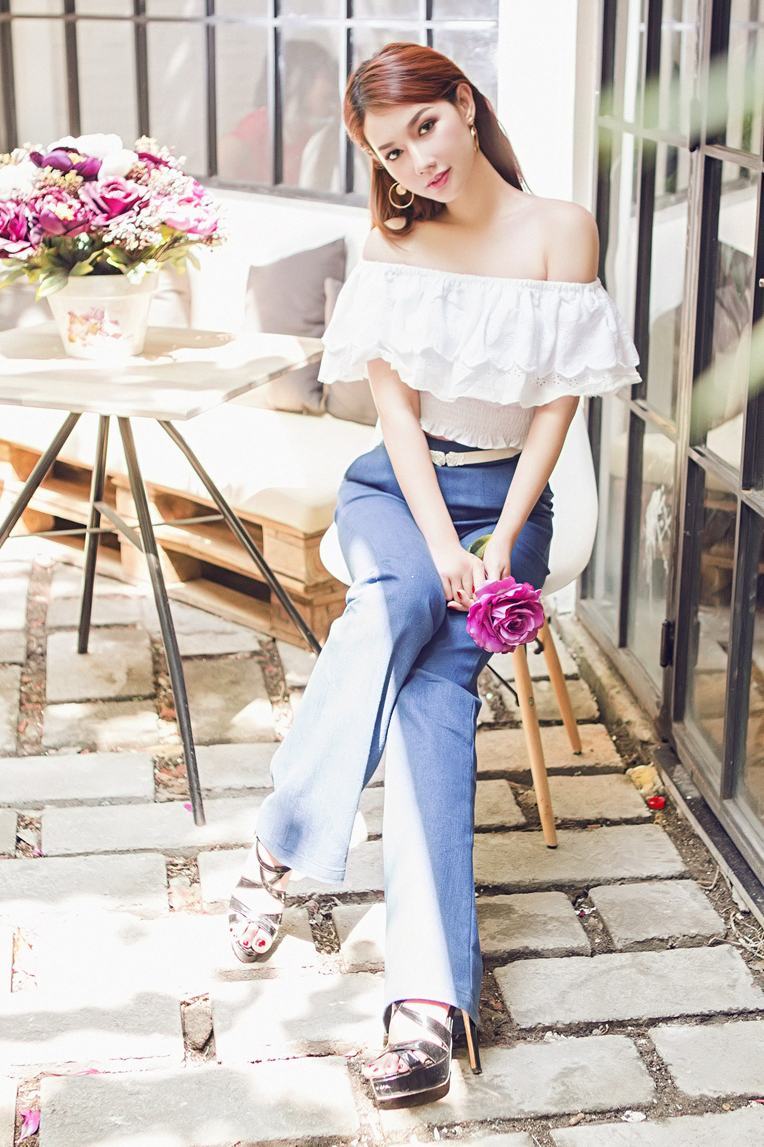 | Trong bộ ảnh có chủ đề xuân 2015, Quỳnh Chi diện trang phục đời thường nữ tính. Với vóc dáng chuẩn cùng gương mặt xinh xắn, người đẹp khoe thần thái tươi tắn khi chụp ảnh. |