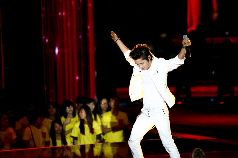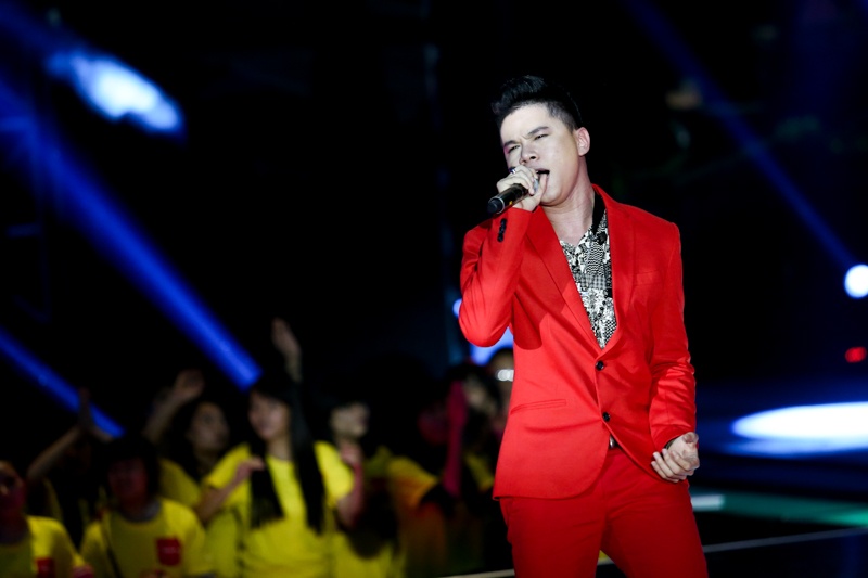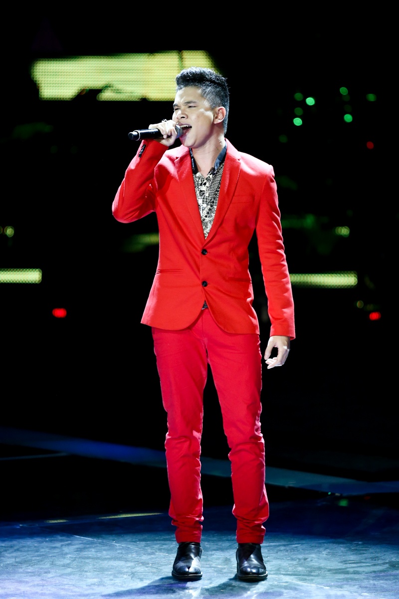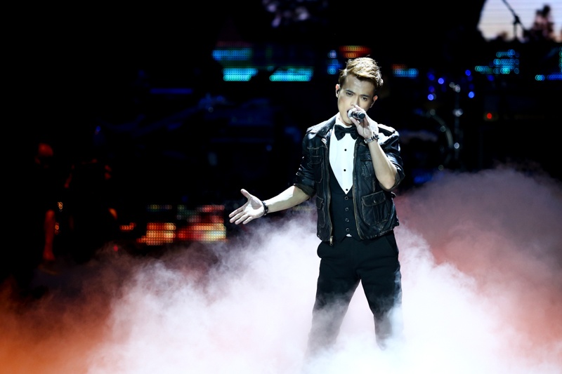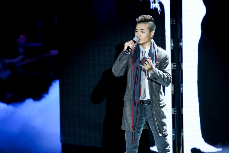 | Phần hát giả thanh của chàng trai không được trong như bình thường, nhưng sự cố gắng này vẫn giúp tiết mục thêm thuyết phục. Minh Sang cũng chú trọng trong việc thể hiện động tác hình thể. |