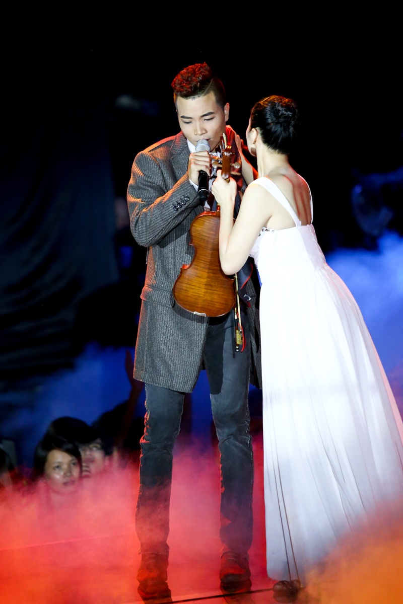 | Trước khi Song Tú biểu diễn, "sư phụ" Mr Đàm của cô đã lao lên tận sân khấu để dặn dò. Có lẽ sự tận tình của người huấn luyện viên và quyết tâm thể hiện bản thân của bà mẹ một con đã giúp Song Tú tỏa sáng nhất cả đêm thi. |