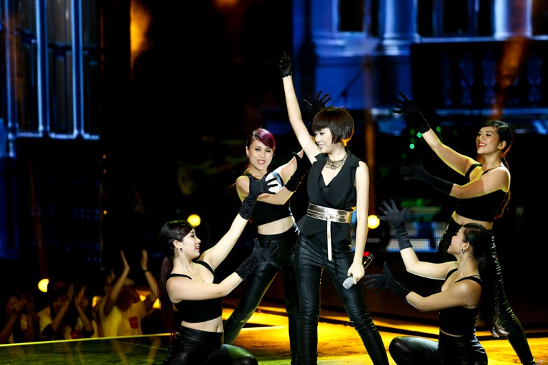 | Phần thi của Huyền My hấp dẫn hơn nhờ đầu tư thêm về vũ đạo. |