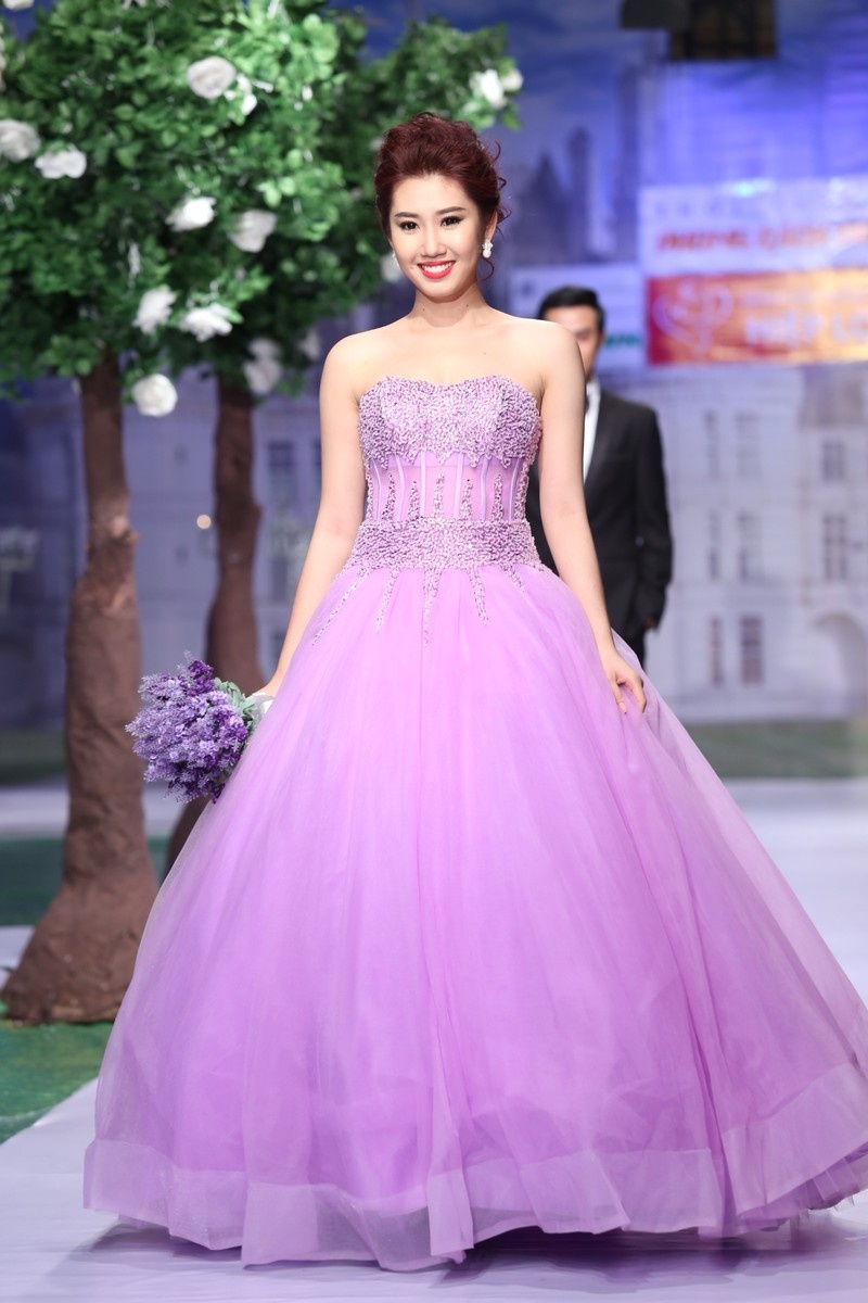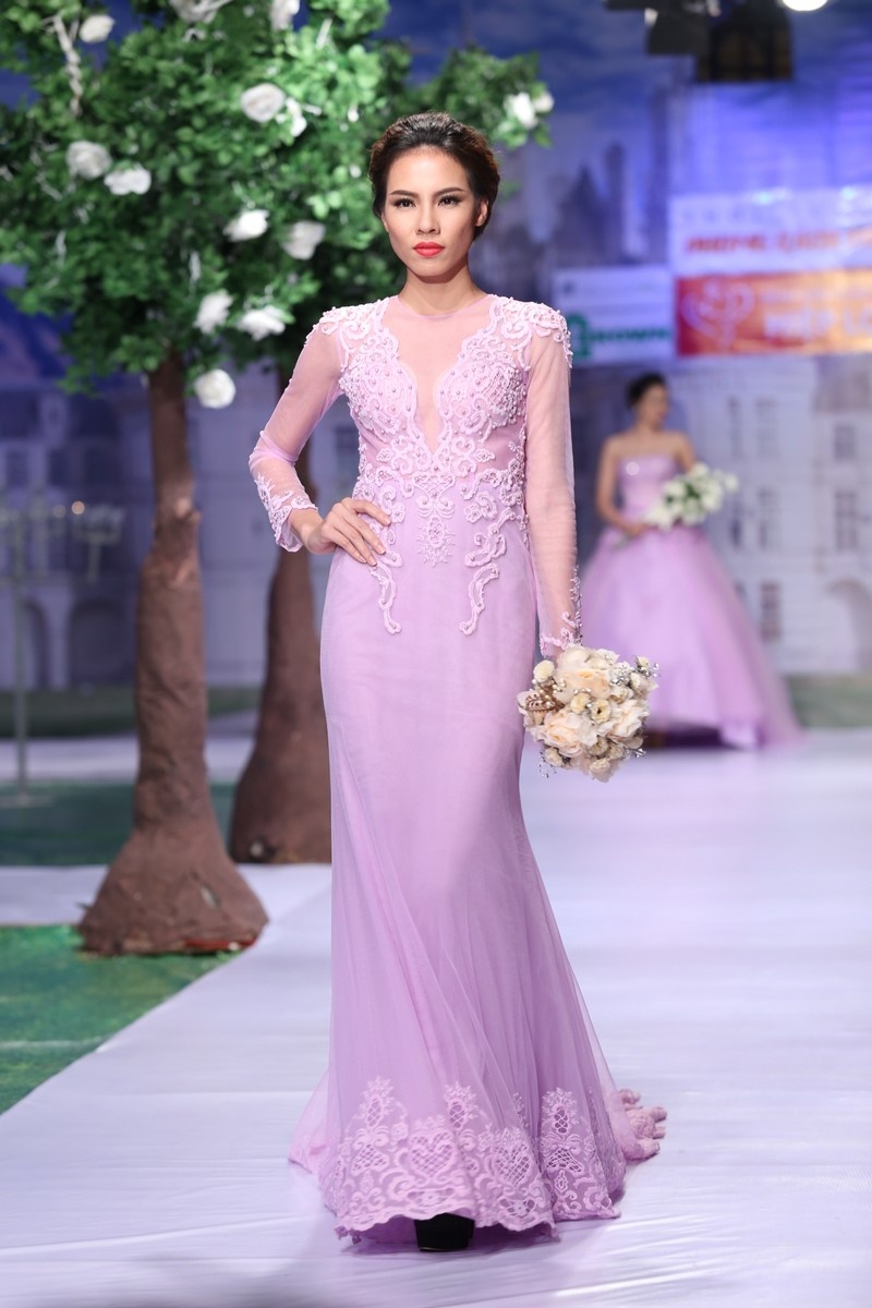 Nữ người mẫu nổi bật trên sàn diễn thời trang ''Phong cách trẻ'' với mẫu váy cưới tông màu tím lãng mạn.