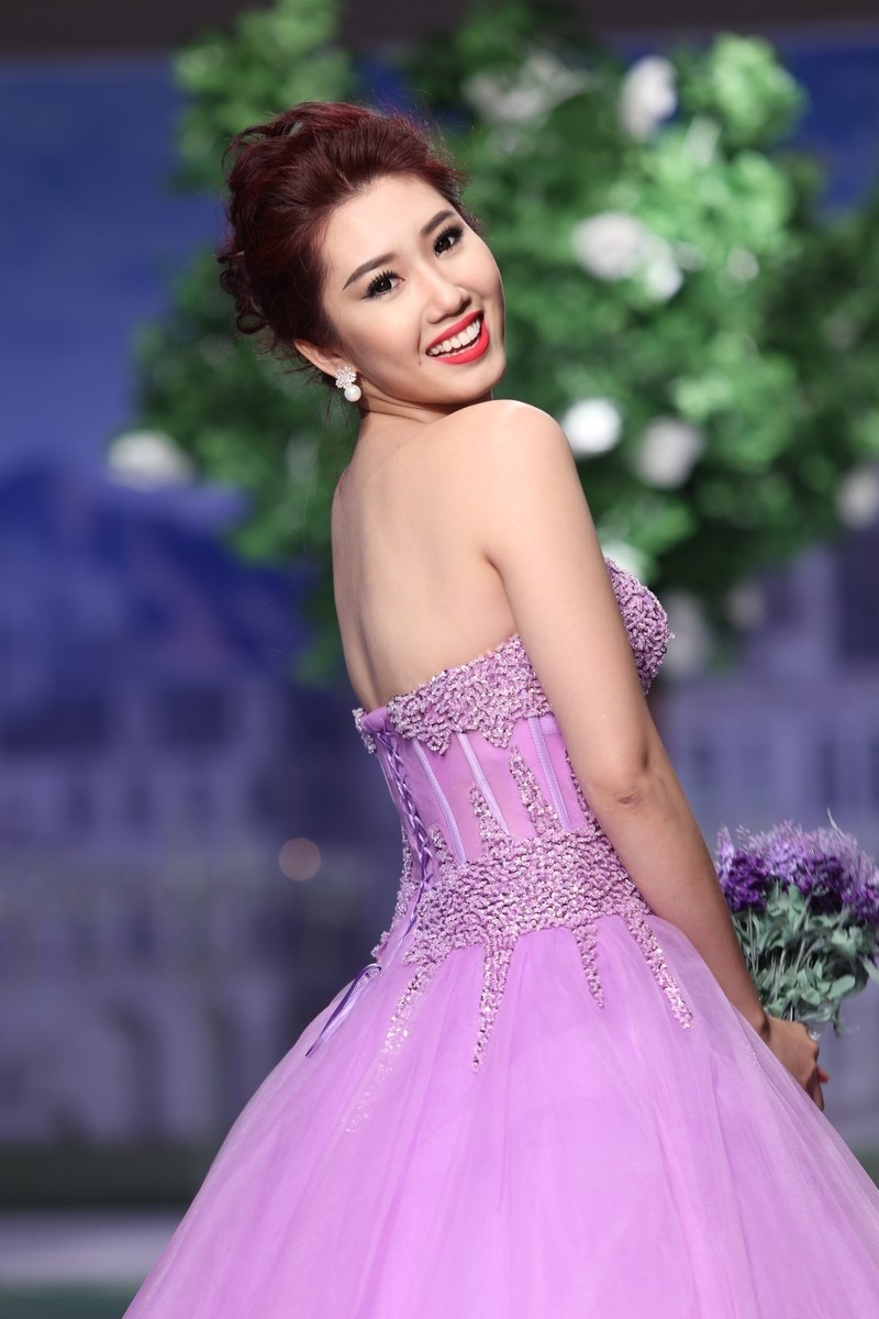 Trên sàn diễn của chương trình Phong cách trẻ, chân dài trưởng thành từ Vietnam's Next Top Model nổi bật và quyến rũ trong bộ đầm gam màu tím nữ tính và lãng mạn. Cô khá tự tin sải bước chuyên nghiệp sau khi vừa hoàn thành chế độ giảm cân cấp tốc.