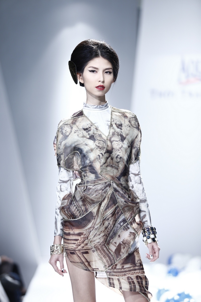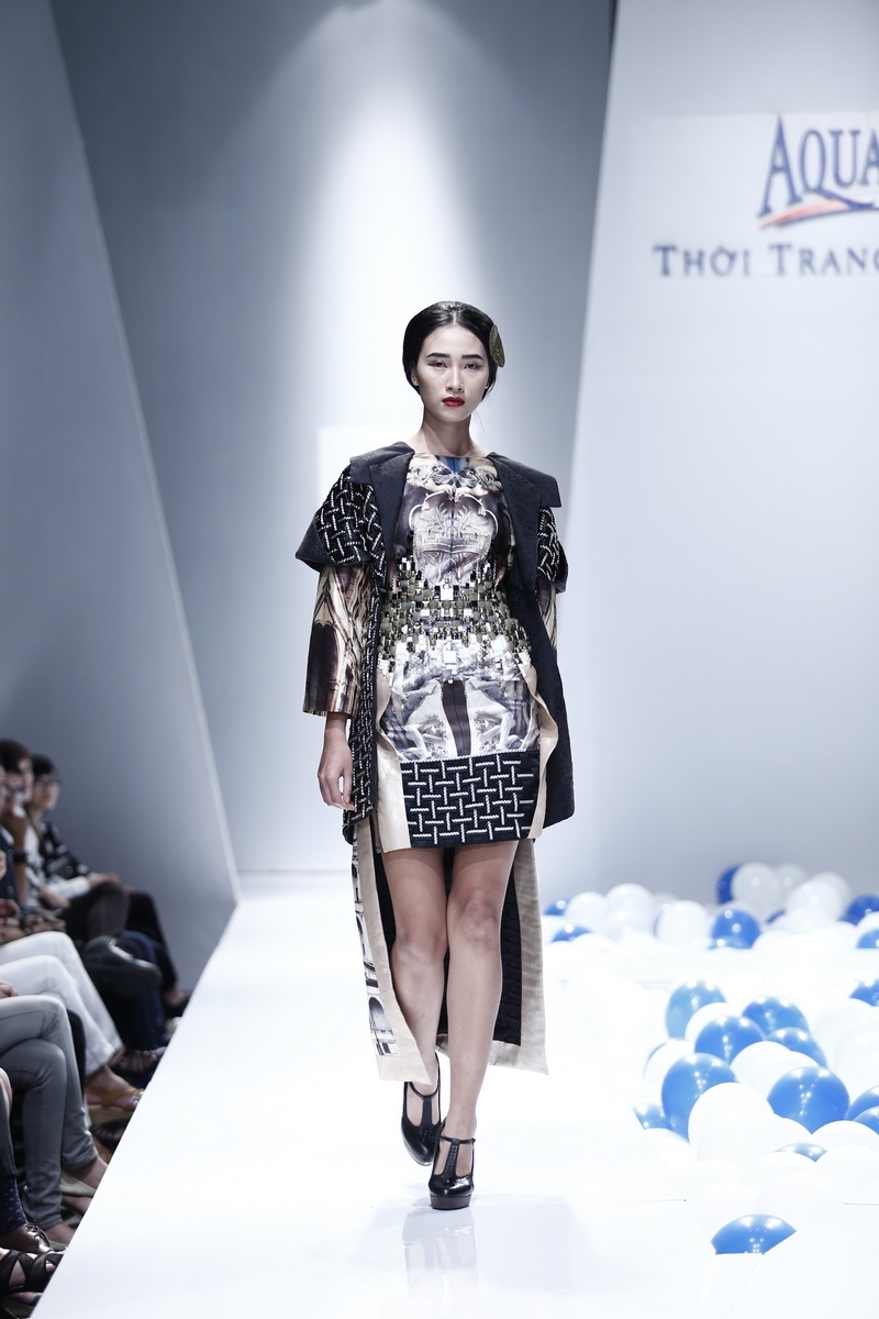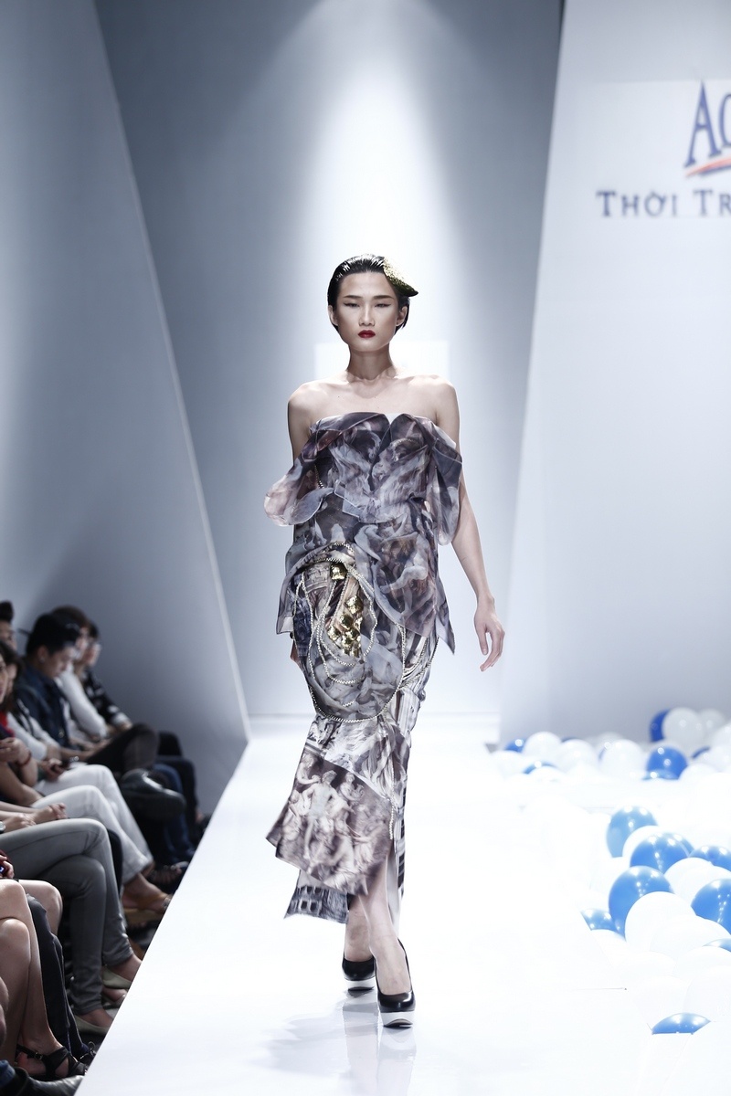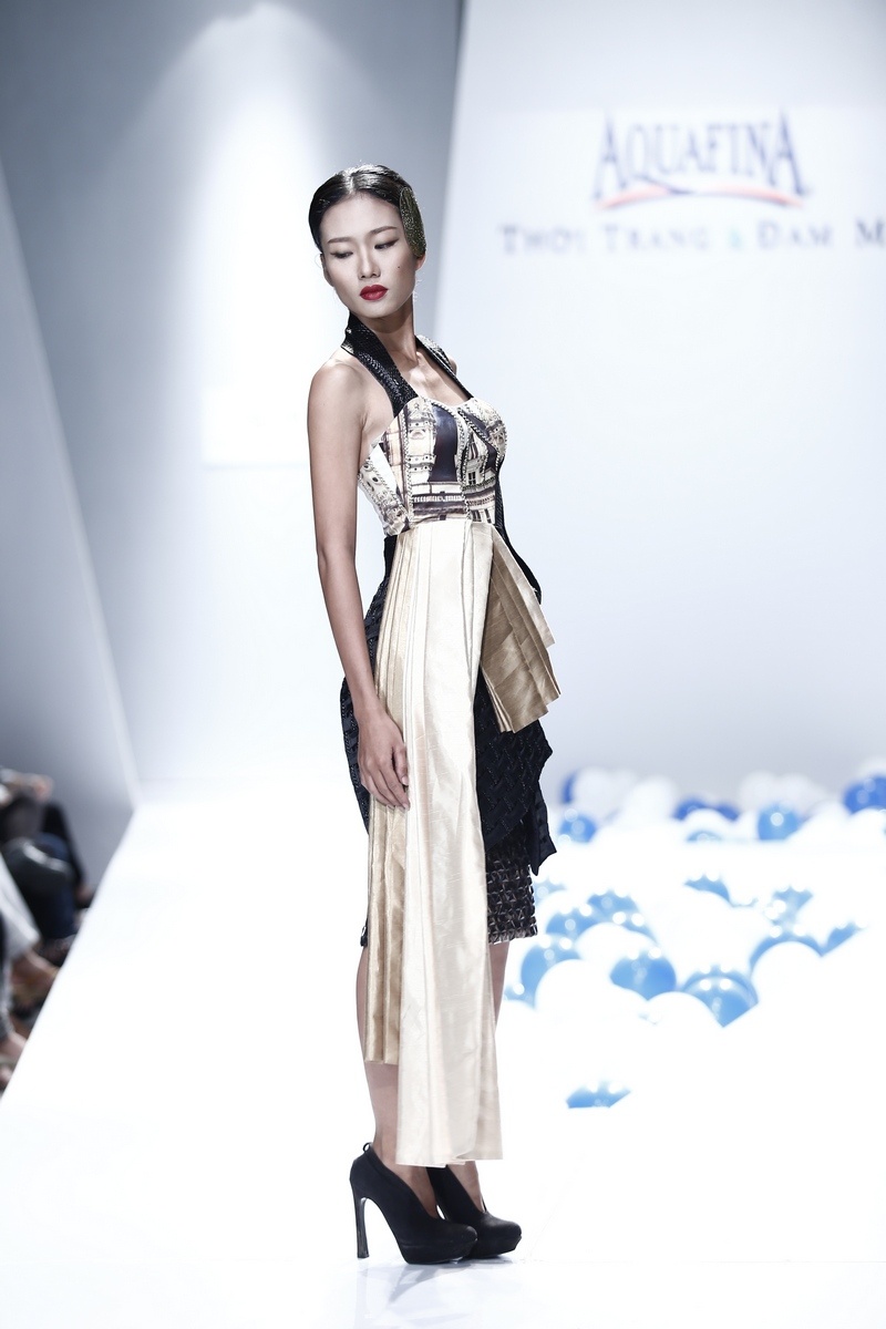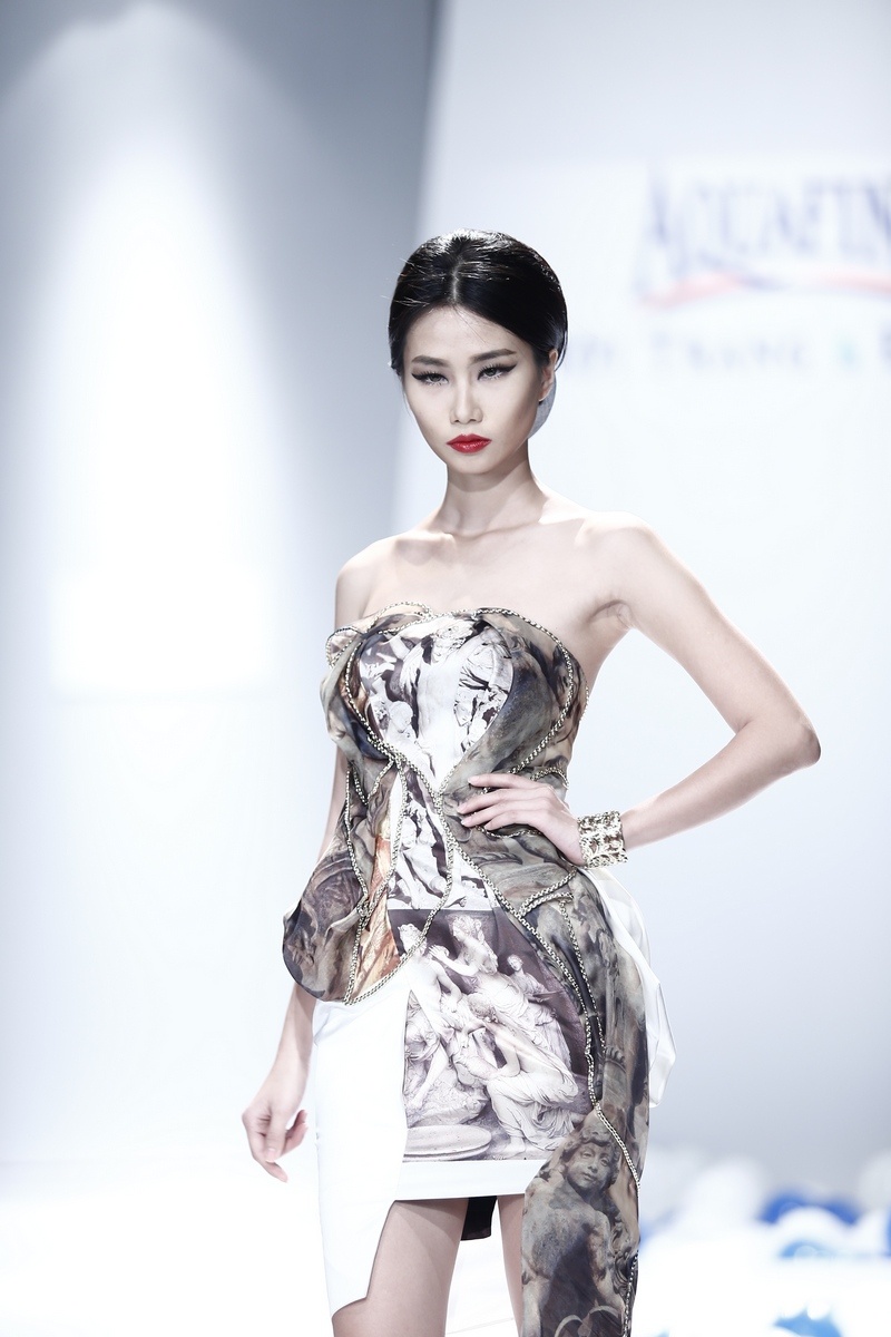 Thiết kế ứng dụng có họa tiết đậm chất nghệ thuật được người xem hưởng ứng do người mẫu Phương Nghi trình diễn.