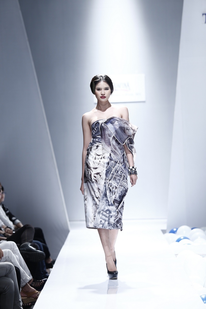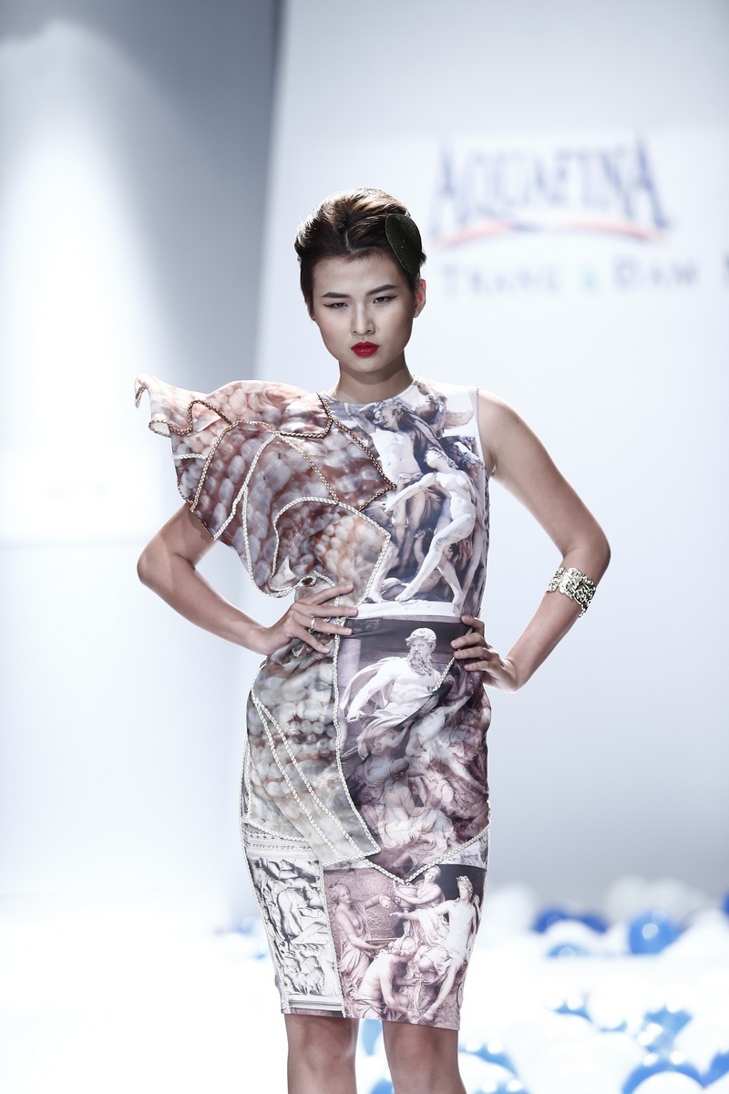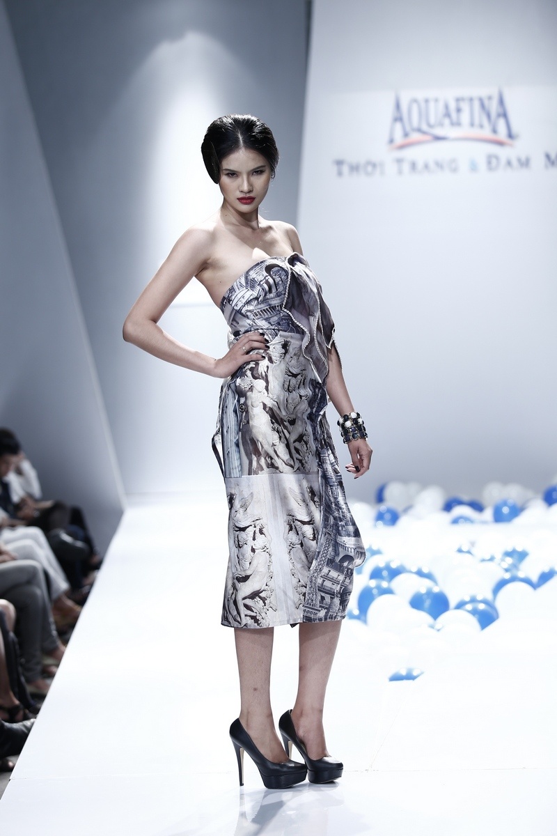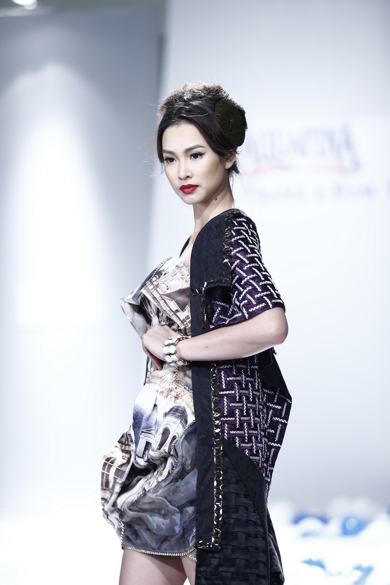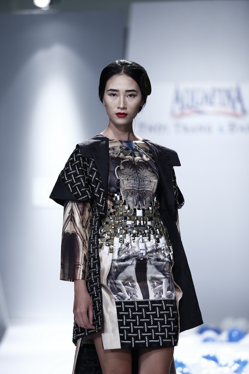 Thiết kế ứng dụng có họa tiết đậm chất nghệ thuật được người xem hưởng ứng do người mẫu Phương Nghi trình diễn.