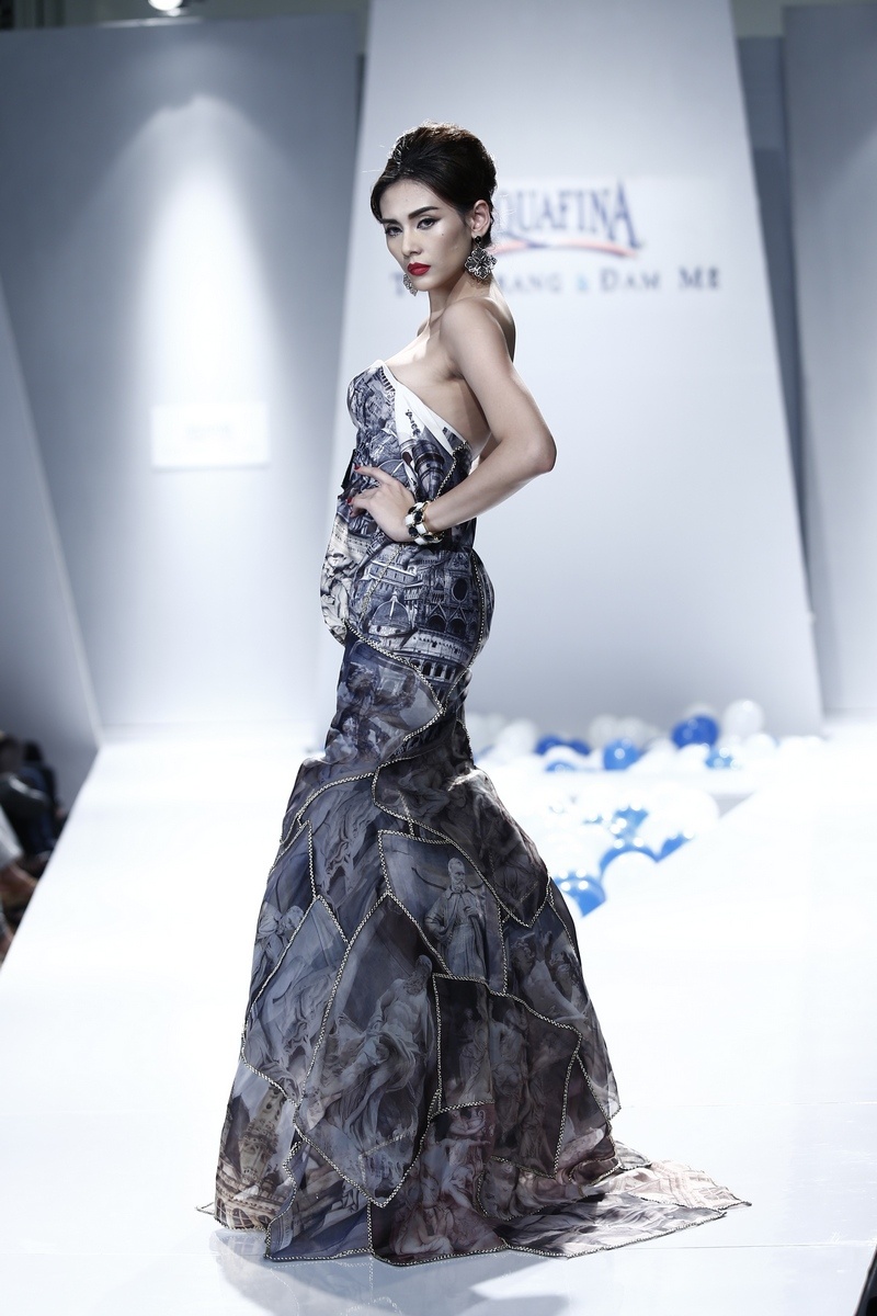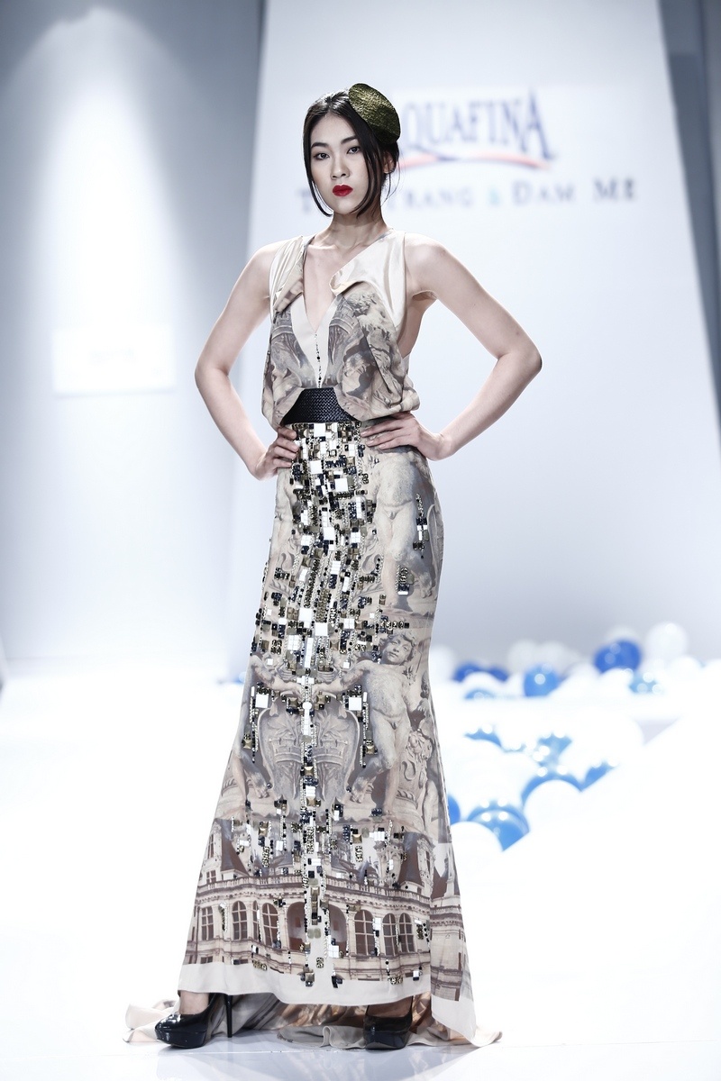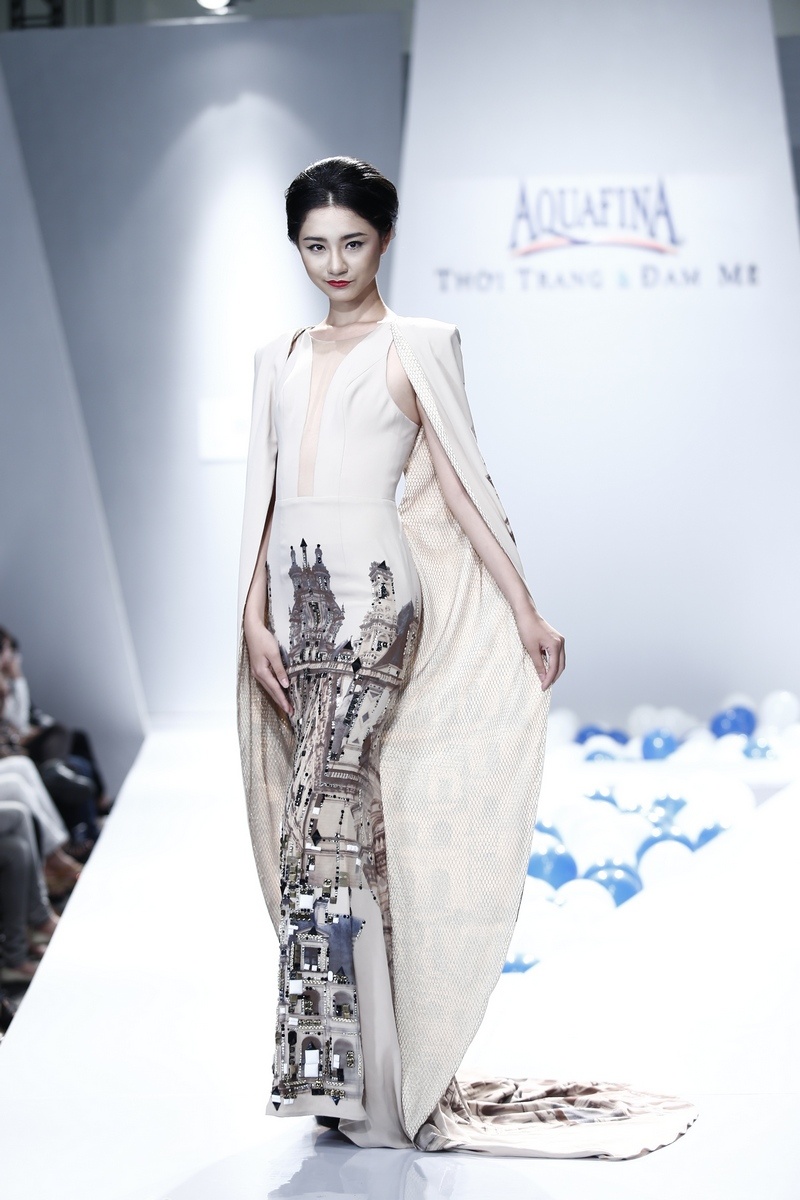 Những hình ảnh của kiến trúc Pháp về lâu đài Chambord được diễn tả sinh động trên thiết kế dạ hội.